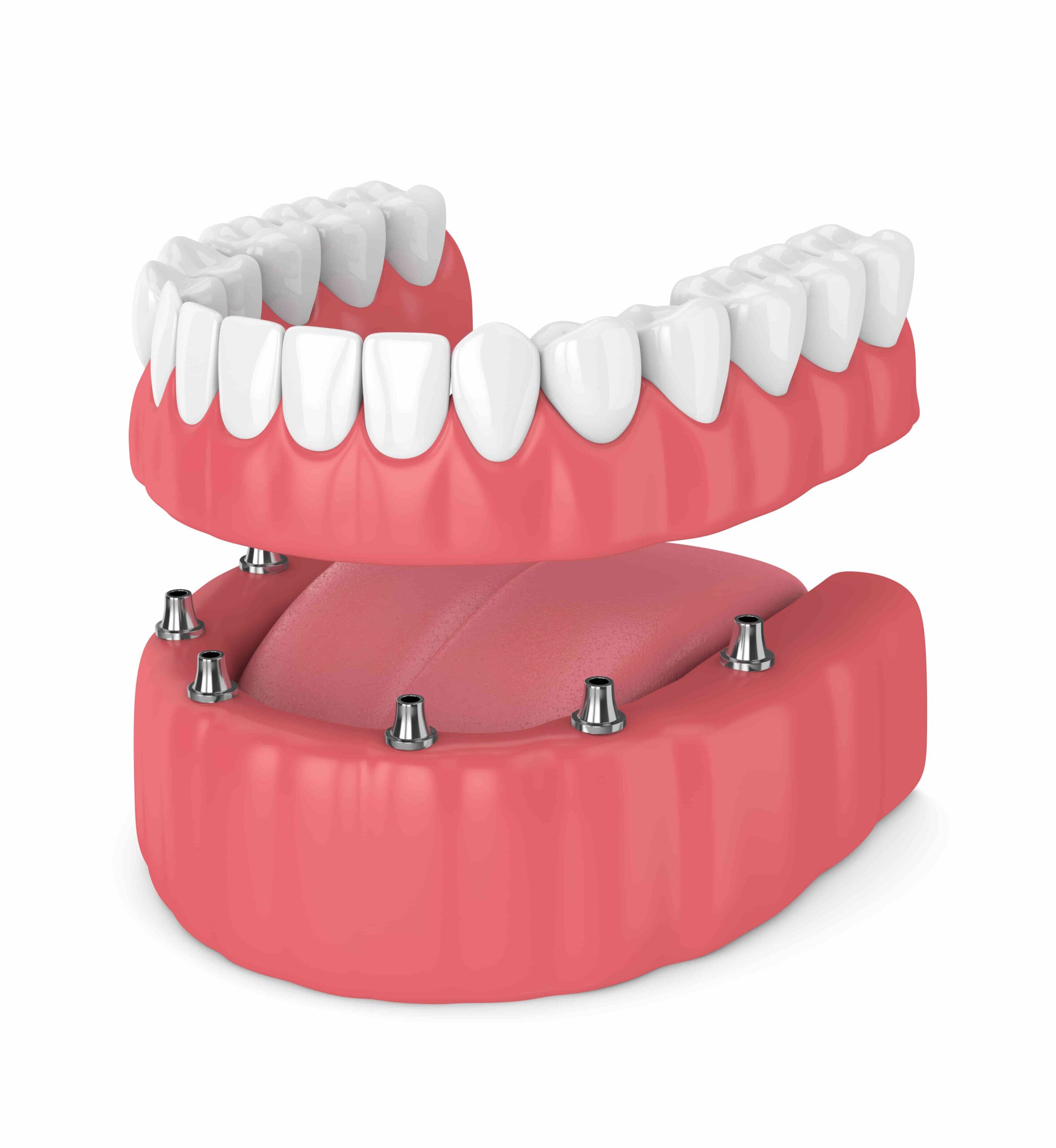 - Prothèse fixe sur 5-6-7-8-10 implants : cette technique est utilisée pour installer de façon permanente une prothèse dentaire complète (dentier). Bien que quatre implants dentaires puissent être suffisants pour supporter une prothèse complète, surtout avec la technique All- on-4®, il est parfois indiqué de procéder avec l’insertion de cinq, six, huit ou même dix implants dans l’os alvéolaire pour supporter une telle prothèse. Les facteurs qui ont le plus d’influence pour déterminer le nombre d’implants nécessaires sont la qualité et la quantité de la substance osseuse, la stabilité recherchée et la stimulation de l’os alvéolaire. Habituellement, un plus grand nombre d’implants sera nécessaire si :