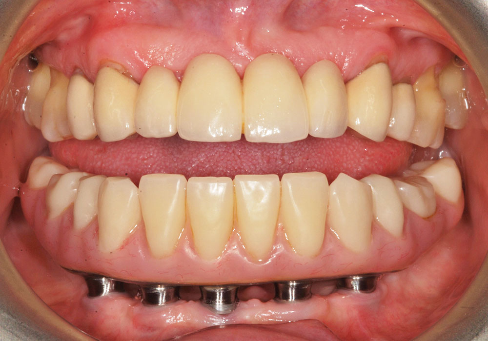 Il est plus fréquent d’utiliser huit implants et plus pour supporter une prothèse complète à la mâchoire du haut qu’à celle du bas. Les prothèses fixées à la mâchoire du bas requièrent plus rarement l’utilisation de plus de six implants.
